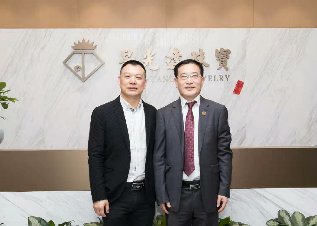 中国珠宝玉石首饰行业协会副会长兼秘书长毕立君(右)与星光达珠宝董事长林畅伟(左)合影留念