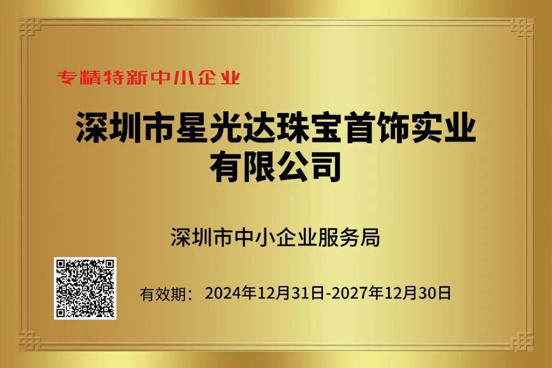 近日,深圳市中小企业服务局发布了《2024年深圳市专精特新中小企业公示名单》,深圳市星光达珠宝首饰实业有限公司凭借在黄金珠宝领域持续深耕细作、不断精进与创新,荣获“深圳市专精特新中小企业”认定。